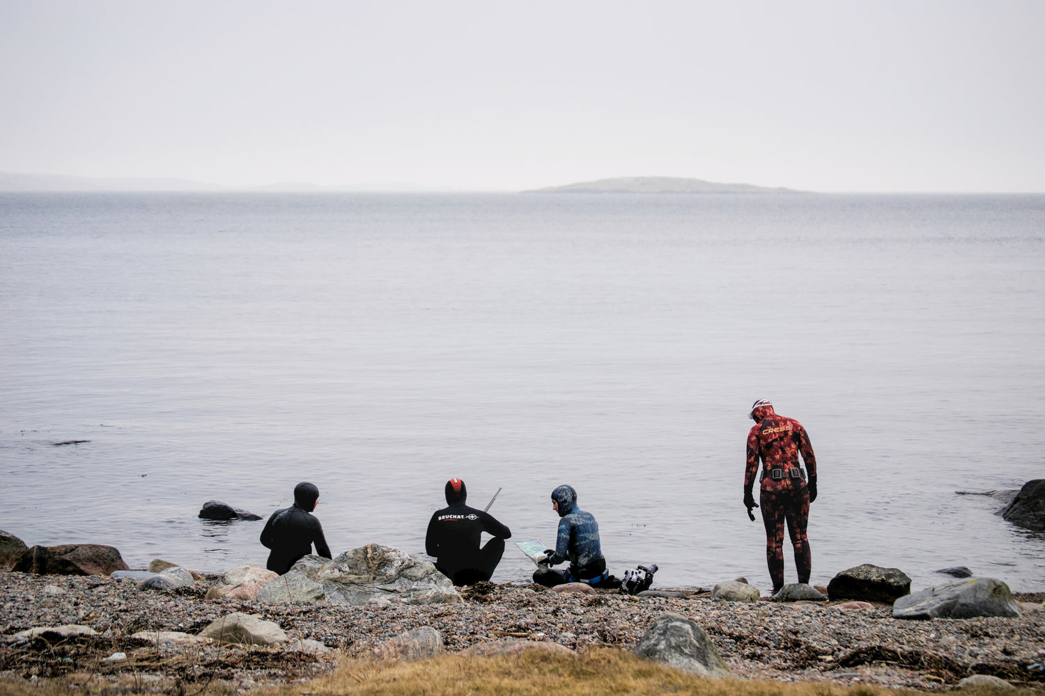 A collection of images showcasing freedivers exploring the waters near the cliffs of Grebbestad, Sweden. Capturing the brief moments above the water surface.